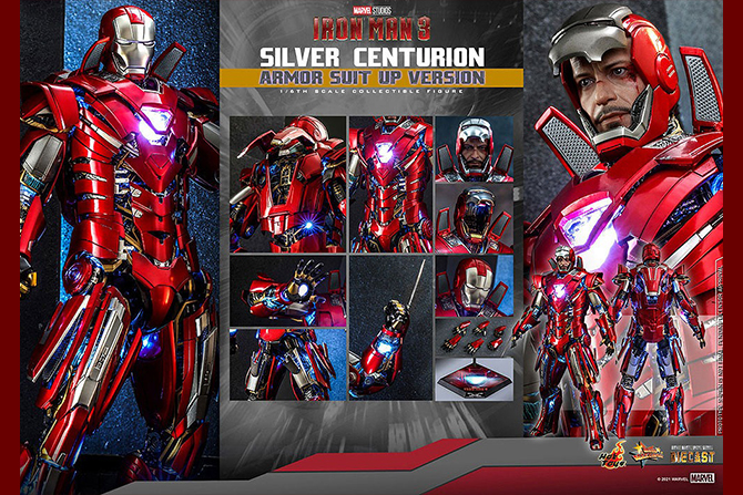 『アイアンマン3』に登場する、アイアンマン・マーク33、通称「シルバー・センチュリオン」を装着した瞬間のトニー・スタークを、全高約32センチ、16箇所以上が可動するハイエンドな1/6スケールのフィギュアとして立体化!