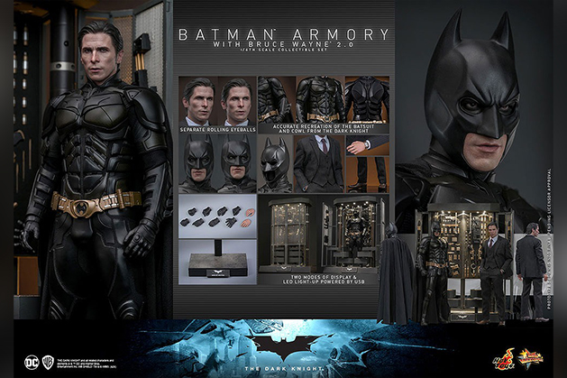 ブルース・ウェインは、全高約30cm、30箇所以上が可動する、ハイエンドな1/6スケールのフィギュアとして立体化。