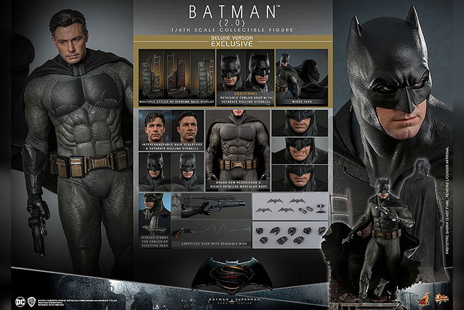 映画『バットマン vs スーパーマン ジャスティスの誕生』に登場するバットマンを、全高約33cm、30箇所以上が可動するハイエンドな1/6スケールのフィギュアとして立体化。