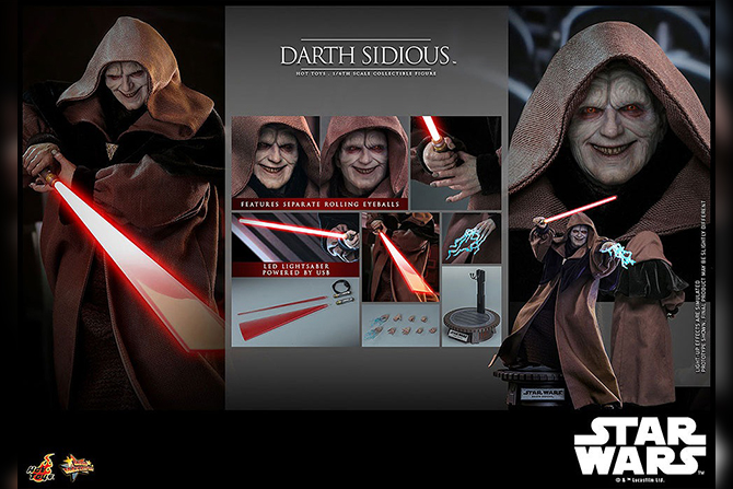 『スター・ウォーズ エピソード3/シスの復讐』に登場するダース・シディアスを、全高約29cm、30箇所以上が可動するハイエンドな1/6スケールのフィギュアとしてムービー・マスターピース化!