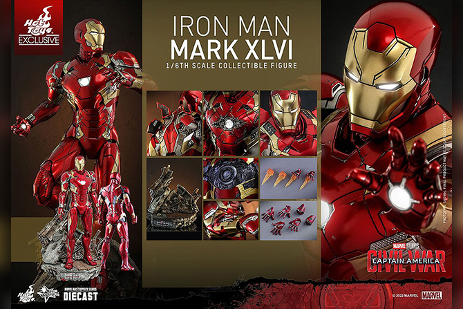 『シビル・ウォー/キャプテン・アメリカ』に登場するパワードスーツ、アイアンマン・マーク46を、全高約33センチ、30箇所以上が可動するハイエンドな1/6スケールのフィギュアとしてムービー・マスターピース化!