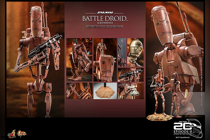 『スター・ウォーズエピソード2/クローンの攻撃』に登場するジオノーシス製のバトル・ドロイドを、全高約31センチ、26箇所以上が可動するハイエンドな1/6スケールのフィギュアとして立体化!