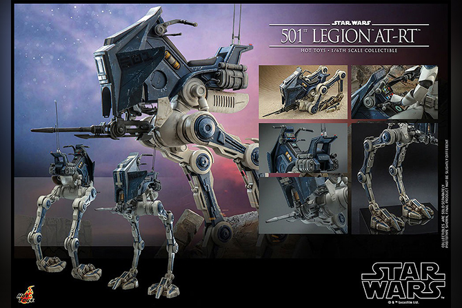 『スター・ウォーズ:クローン・ウォーズ』に登場する第501大隊のAT-RTを、全高約64センチ、16箇所以上が可動するハイエンドな1/6スケールのビークルとして立体化!本体は白地にブルーのマーキングが施された第501大隊仕様となっているぞ。