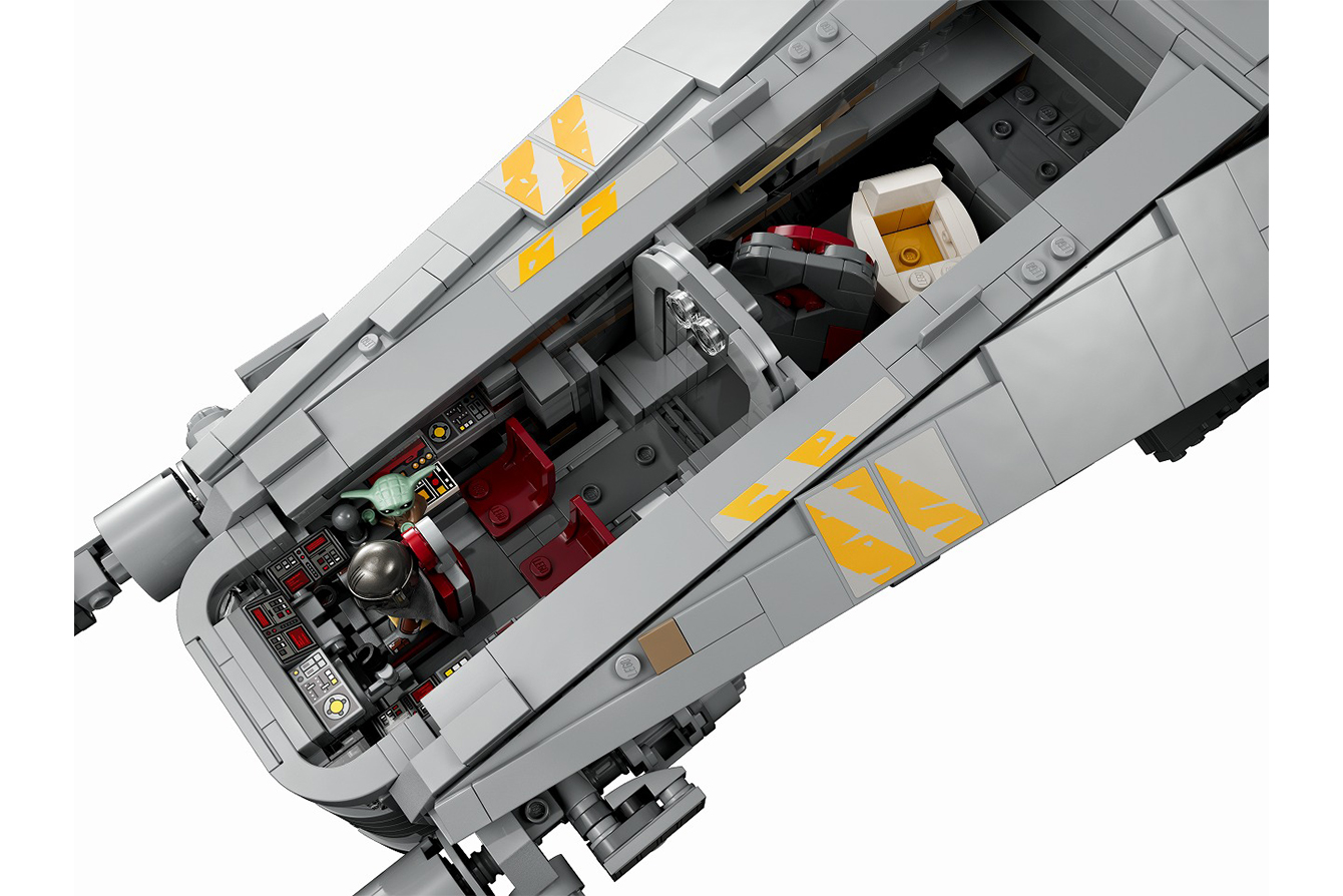 取り外し可能なエンジンとコックピット、脱出ポッド、ミニフィギュアサイズのカーボン冷凍室に加え、組み立て式のブラーグ™のモデルと、グローグー™、マンダロリアン™、ミスロル™、クイール™のミニフィギュアが付属している。