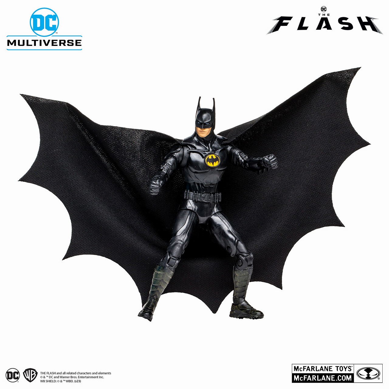 『ザ・フラッシュ』に登場する、マイケル・キートン演じるマルチバースのバットマンを、全高約18cm、約22箇所が可動するアクションフィギュアとして立体化!造形や質感にこだわり、細部に至るまで再現している。武器として、グラップネル・ガンとバットラングが付属。アクセサリーとして、差し替え用ハンドパーツが付属する。マントは布製の素材が採用されているので、広げることができるぞ。パッケージはそのまま飾ってもカッコいいウィンドウボックス仕様だ。