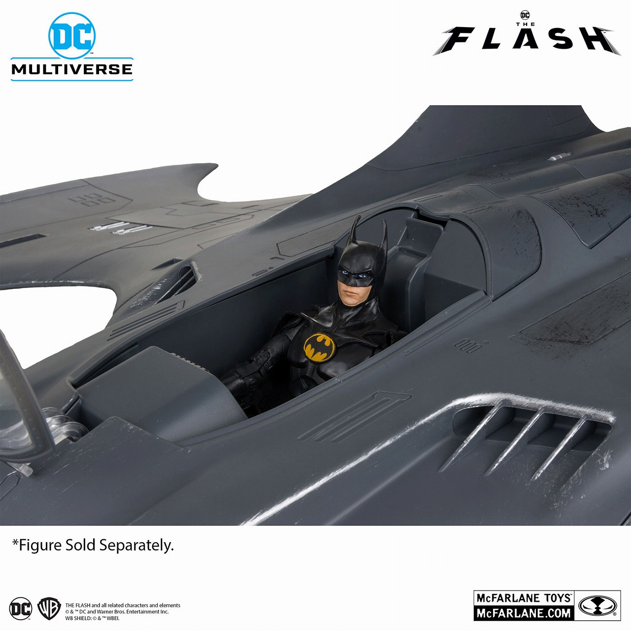 『ザ・フラッシュ』に登場する、マイケル・キートン演じるマルチバースのバットマンが搭乗するバットモービルを、大迫力の全長約56cmで立体化!