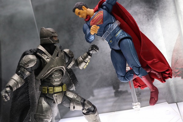 使用しているのはMAFEXのアーマードバットマンとスーパーマンです!