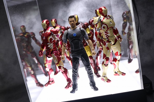 今回使用したのはS.H.フィギュアーツのトニー・スターク、アイアンマン マーク3、マーク42、マーク43、マーク45、マーク46です。