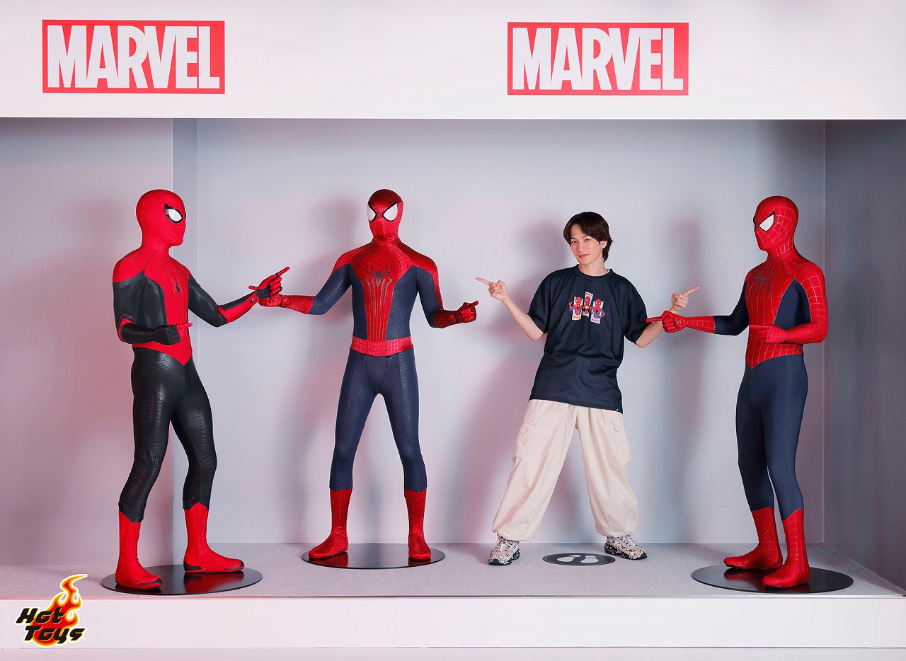 !スーツはホットトイズ製、サイズは等身大で身長差までリアルに再現されており、 まるで本物がいるような感覚を味わえます。”ピーター4”として、スパイダーマンたちと一緒にミームに参加しよう!