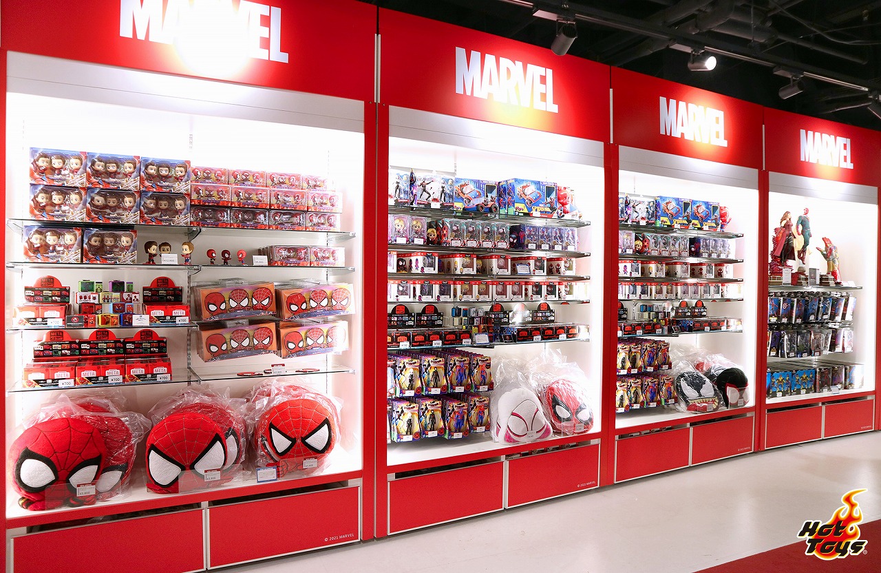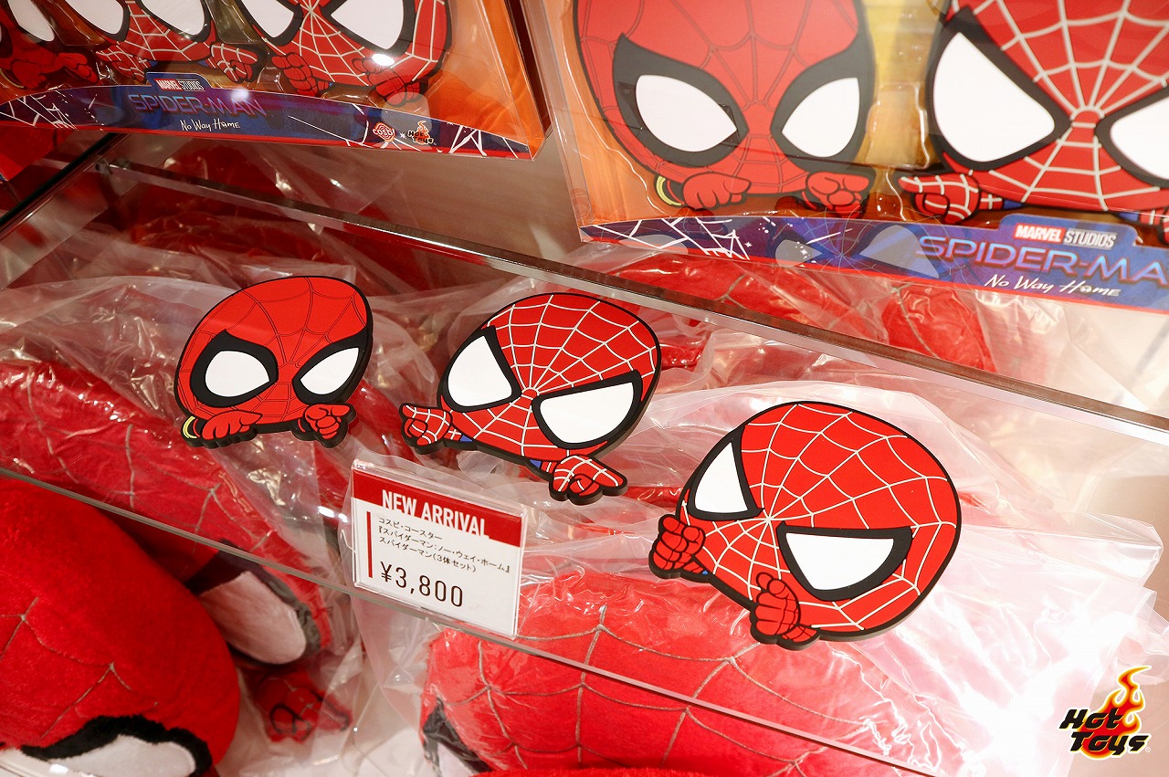 中でも、「コスビ」シリーズの可愛いスパイダーマンのクッションとコースターは、「トイサピエンス」でしか買えない限定アイテム。等身 大のスパイダーマン同様、指を差し合うネットミームのポーズをしているので、フォトスポットで写真を撮った記念としても最適だ!