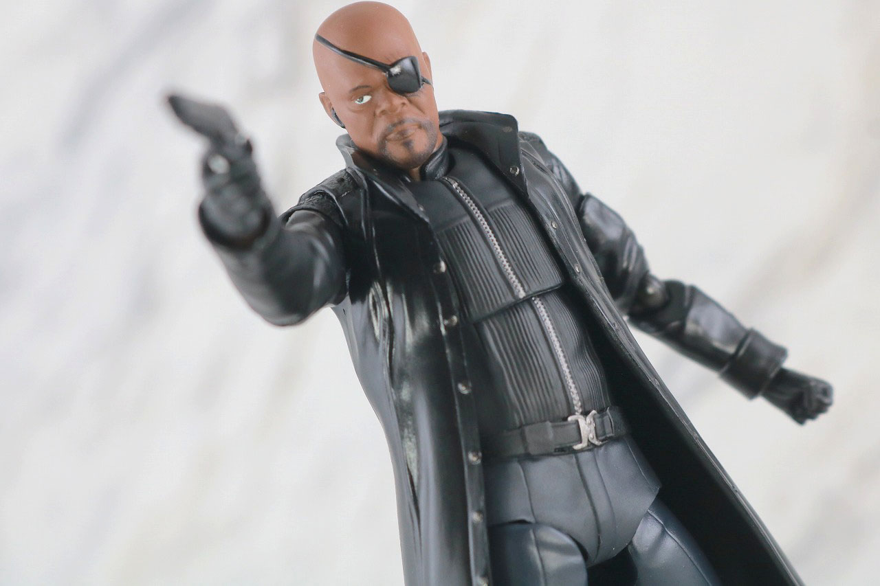 フィギュアーツのニック・フューリーを使って怒られるシーンも。