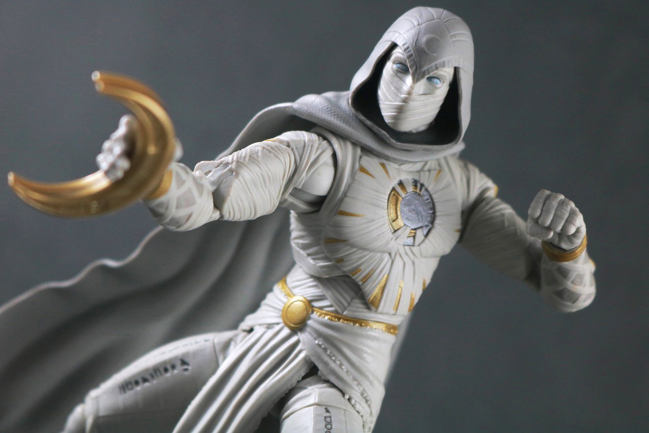同じマーベルレジェンドのムーンナイトと比較。大きさについては頭半個分ぐらいインフィニティ・ウルトロンの方が大きいです。