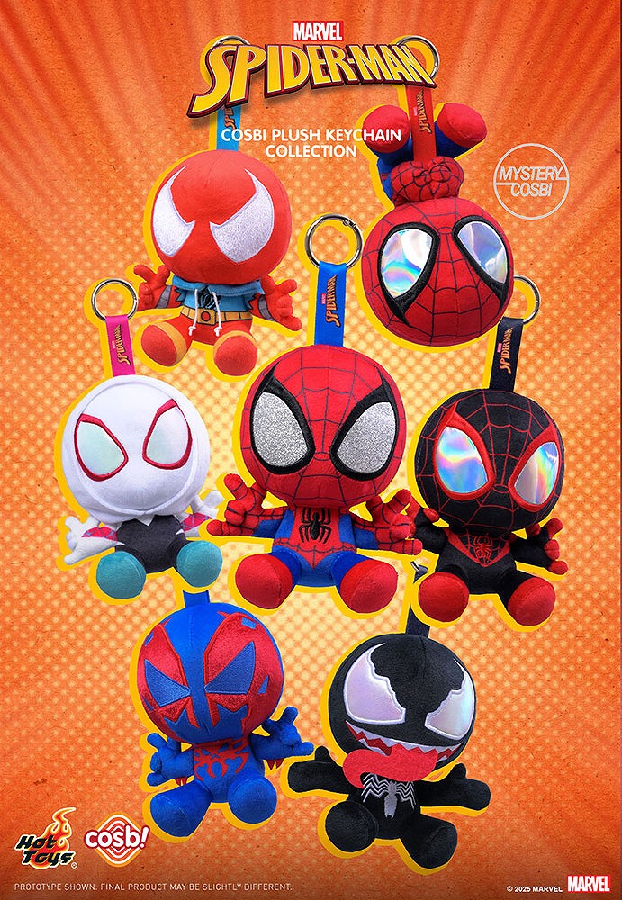 シンプルで愛らしいフォルムと集めやすいサイズが特徴的なデフォルメフィギュア「コスビ」シリーズのデザインをモチーフに、スパイダーマンの関連キャラクターたちをぬいぐるみ化!