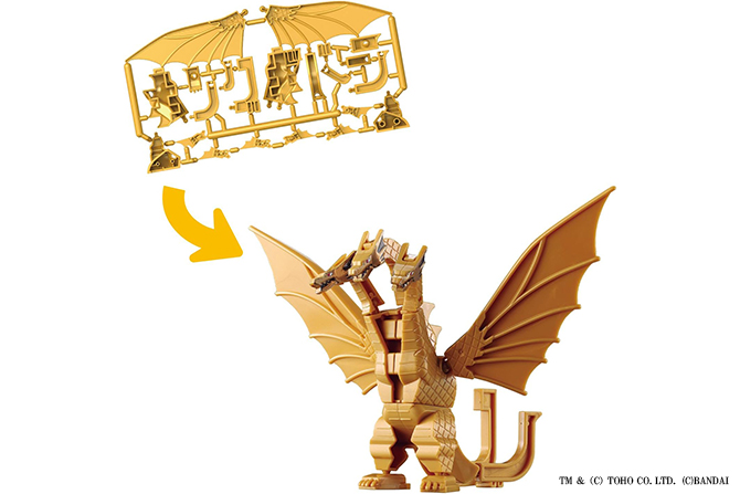 ランナー状態では「キングギドラ」の文字がデザインされており、組み立てることでキングギドラを再現可能だ!