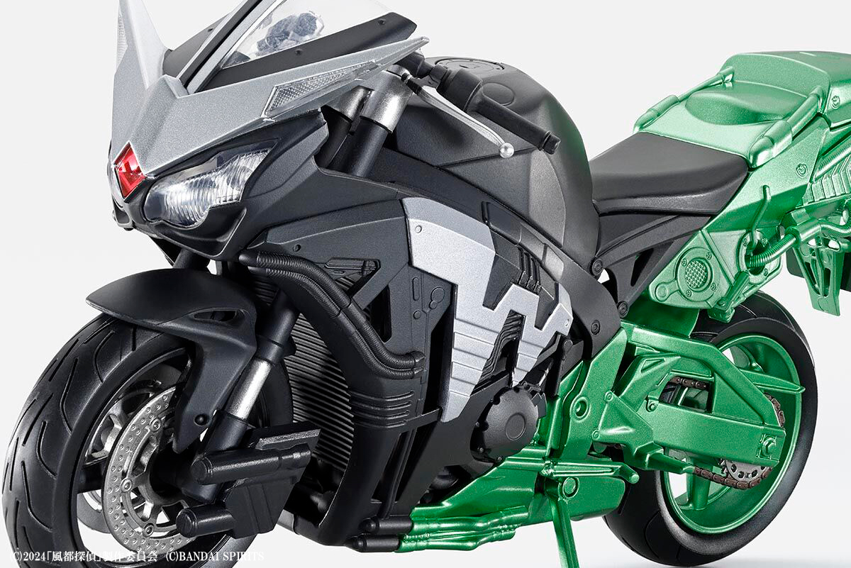 後部のバックユニットは新たにメタリックグリーンが採用され、より劇中のハードボイルダーをイメージしたカラーリングに一新されているぞ!ナンバーも風都のものを再現したものとなっている!