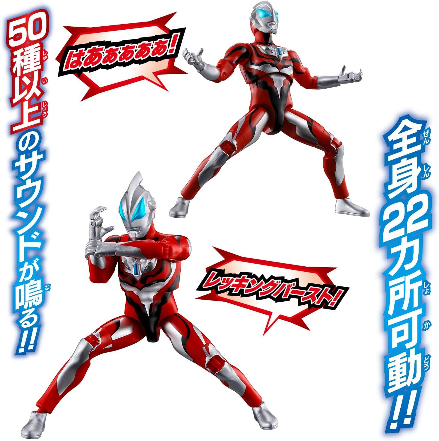 さらに「僕の名はジード!ウルトラマンジードだ!」や「レッキングバースト!」、「決めるぜ!覚悟!」「ジーっとしてても、ドーにもならねぇ!」などのウルトラマンジードの印象的なセリフやサウンドを50種以上楽しめるぞ!