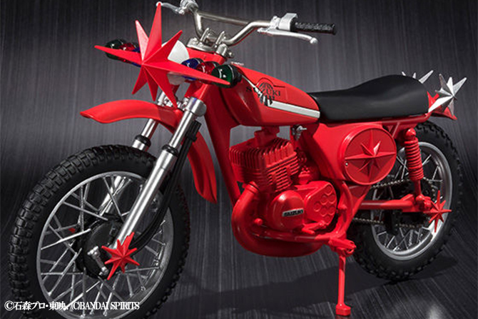 まずはカブトローの全体。SUZUKIのバイクがベース車です。全体的に赤の塗装が占めています。大きさやバランスなんかは問題ありませんね。ちなみに今回はフィギュアーツのストロンガーとのセットのものなので、特写などで使われたリアが角状のタイプのものになっています。ストロンガーに関しては、一般販売の際のストロンガーと変わらないので、レビューは割愛させていただきます。S.H.フィギュアーツ 仮面ライダーストロンガーのレビューはこちらから。