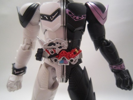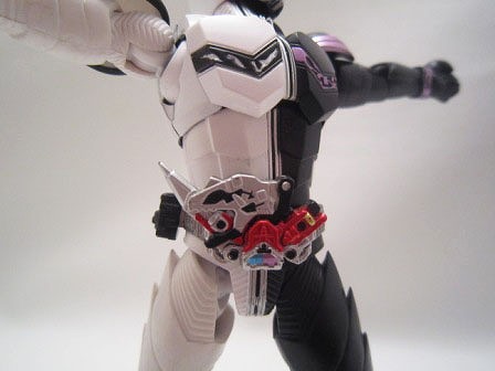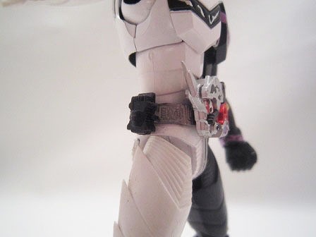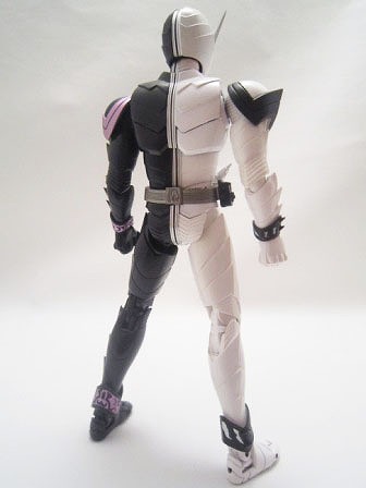 全身。Wの中間フォーム、ファングジョーカーの登場です。白と黒の配色になっています。全体的に棘があり、荒々しくなっていますね。
