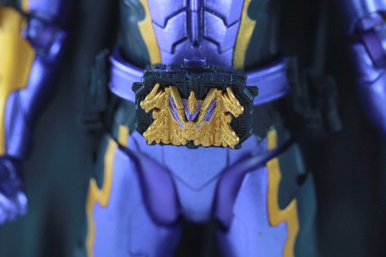 ぐるっと一周。基本は先日紹介した仮面ライダーカリバーのジャアクドラゴンの素体を使用しながら、上半身部分などのアーマーは新規造形のものとなっています。全体的なメタリックな紫カラーもきれいですね。