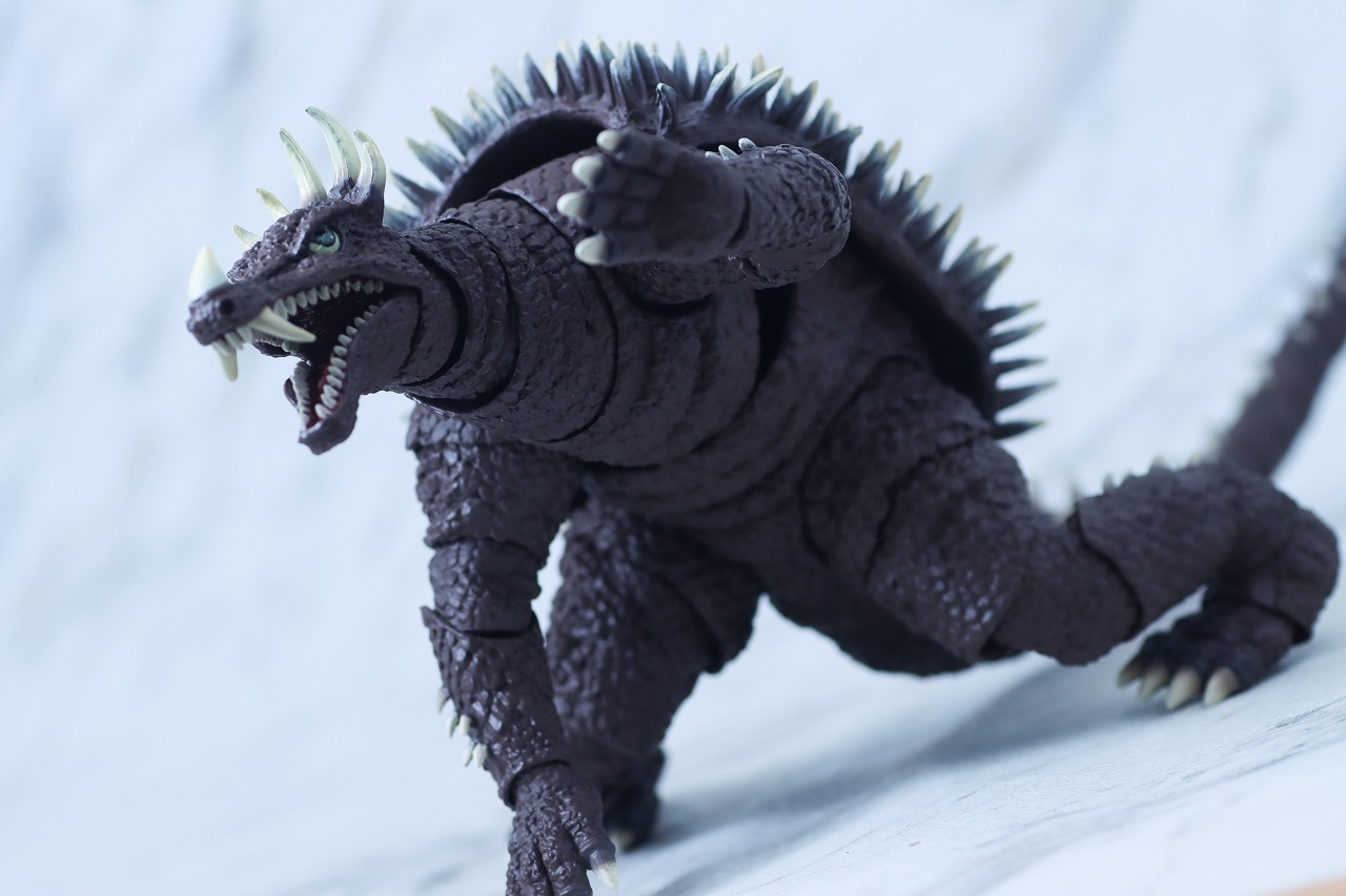 S.H.モンスターアーツのアンギラス(1972)と対決。流石にキングギドラには勝ち目がなさそう。