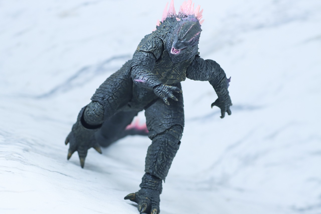 ボディは劇中で強化されたマッシブでスマートなボディのゴジラを立体化しています。新規造形なので気合の入ったクオリティですね。全体的なバランスもかなり近いと思いますし、派手なピンクの背びれも目立ちます。
