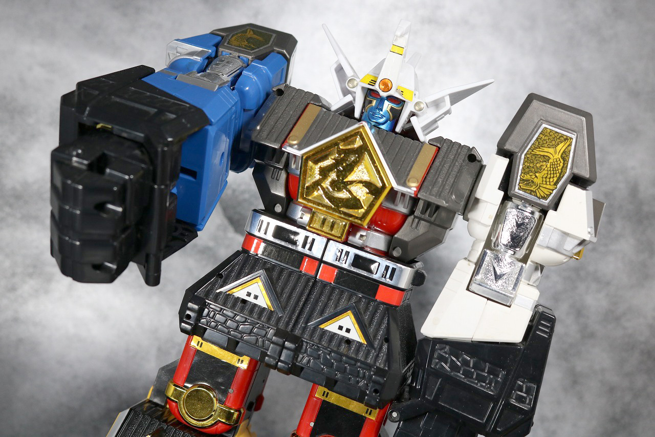 次は今回のセールスポイントの瞬間変化を見ていきましょう。当時のDX玩具と同じく、背中の突起を後ろに引くことで頭がひっくり返ります。
