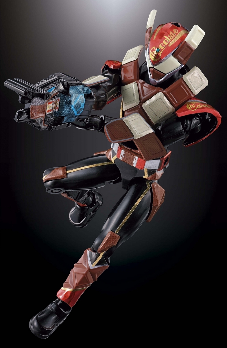 チョコレートの仮面ライダーとなっており、すでにライダーヒーローシリーズのソフビや、専用武器で変身アイテムと思しき銃型の武器のビジュアルも解禁!中にはチョコレートのゴチゾウであるチョコドンゴチゾウが装填されていることにも注目だ。