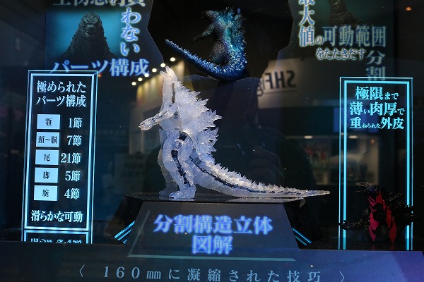 まずはハリウッド版ゴジラにフューチャーしたS.H.モンスターアーツの展示。内部のジョイントを現した半透明のゴジラのサンプルが印象的でした。内部はこんな感じになってるのね・・・!