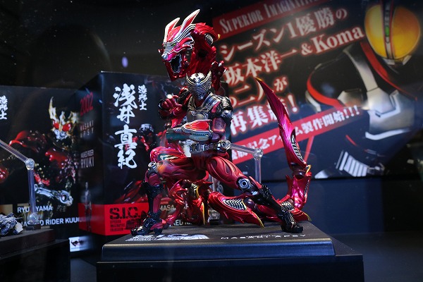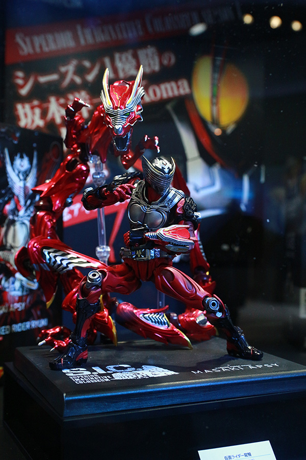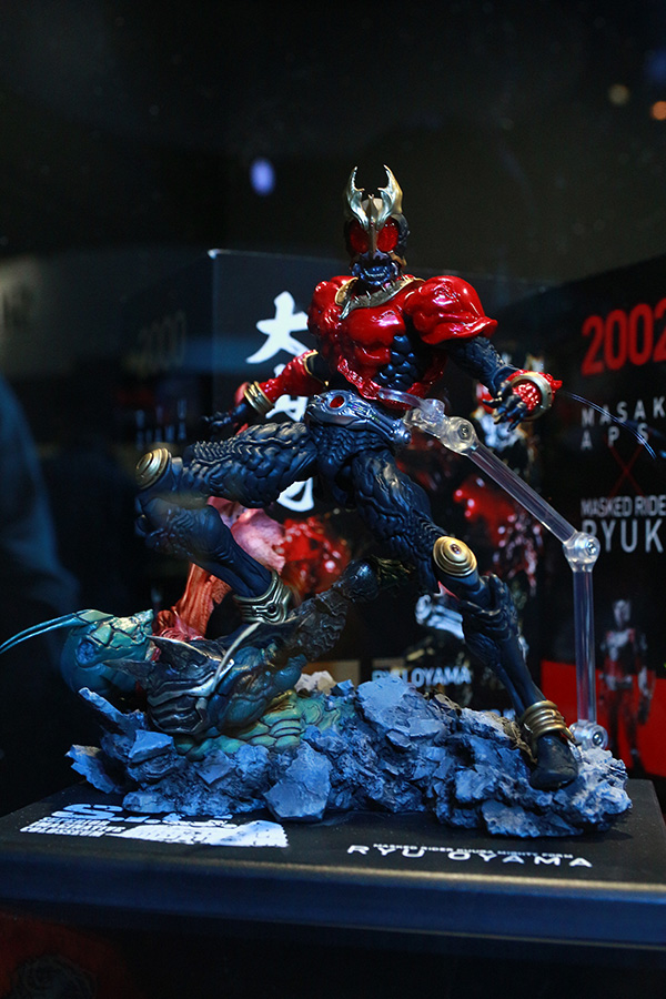 次は話題の仮面ライダーフィギュアブランド「S.I.C」。4人の造形師によってリファインされた仮面ライダーたちを人気投票で競う「S.I.C. SUPERIOR IMAGINATIVE COLOSSEUM」にて登場したアイテムが展示されています。こちらは大山竜さんによるS.I.C 仮面ライダークウガ。
