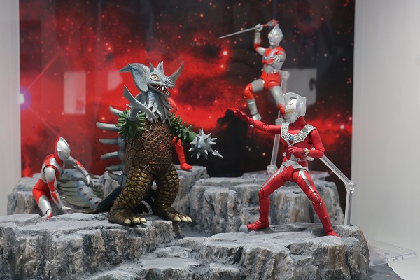 エモエモな展示としては、ウルトラマンジョーニアスと握手をするウルトラマンタイタスのフィギュアーツ!どちらも新規での出品なので、発売に期待が寄せられます!