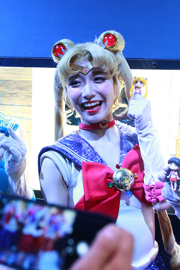 最後は、あいにくの悪天候によってイベントステージが延期になり、サプライズ的に展示スペースに出演してくれたセーラームーンたちのショットで!