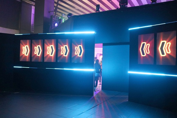 仰々しく並ぶ入り口のモニターたちが来場者の期待を盛り上げます。