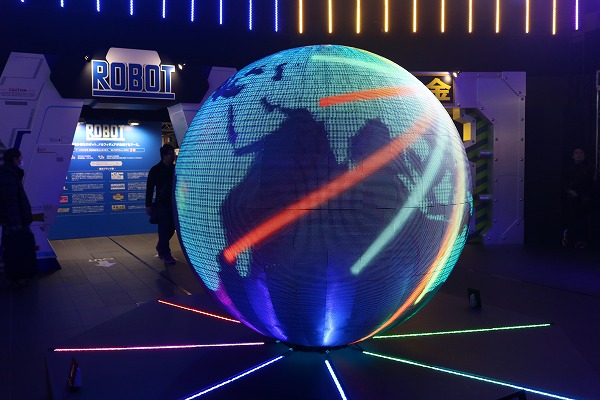 とにかく目を引く球体型ビジョン。地球儀をモチーフに今年世界中で開催された魂ネイションをカラフルに表現。