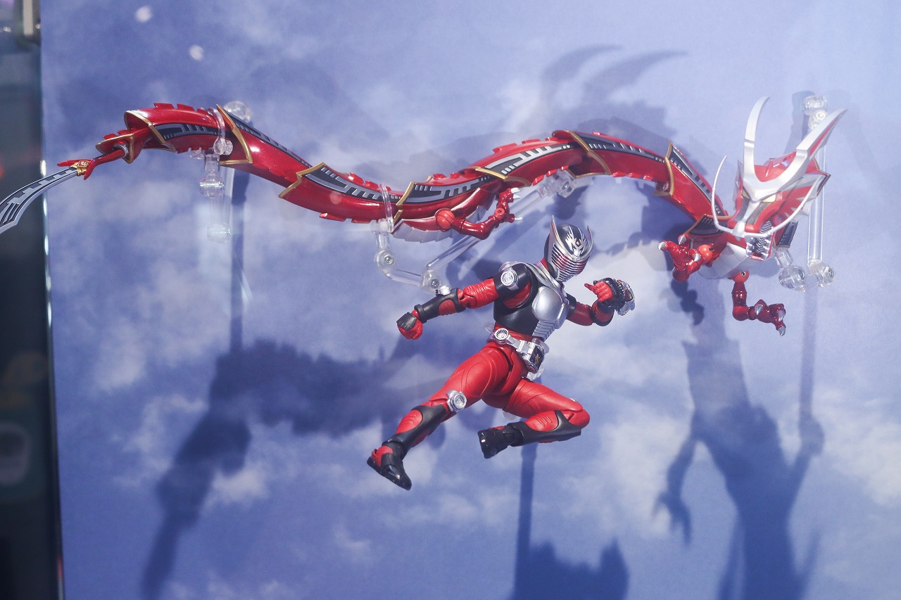 2025年の話題作だったS.H.フィギュアーツ 真骨彫製法の仮面ライダー龍騎の展示。後ろのはドラグレッターも。