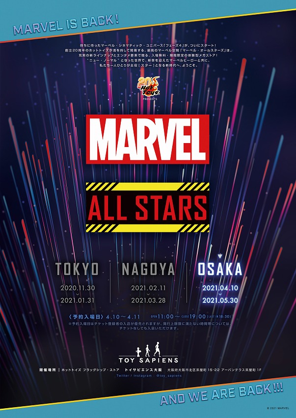 マーベル・シネマティック・ユニバース「フェーズ4」の開幕を記念し、「トイサピエンス⼤阪」にて、⼊場無料の体験型メガストア「マーベル・オールスターズ」を、2021年4⽉10⽇(⼟)〜5⽉30⽇(⽇)の期間限定でオープン!