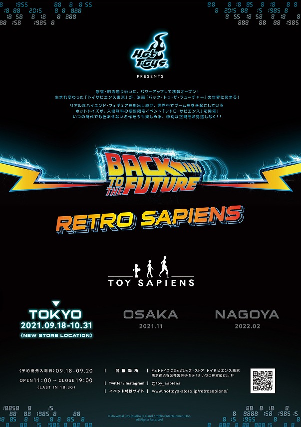 人気フィギュアメーカーのホットトイズが、ホットトイズ フラッグシップ・ストア「トイサピエンス東京」にて、入場無料の『バック・トゥ・ザ・フューチャー』イベント「レトロ・サピエンス」を、2021年9月18日(土)〜10月31日(日)の期間限定で開催!