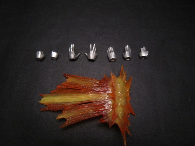 付属品。握り手×2、開き手×2、手刀×2、サムズアップ右手×1、クァンタムストリーム用右手×1、クァンタムストリームエフェクトパーツ×1です。クァンタムストリームエフェクトは迫力満点です。です。